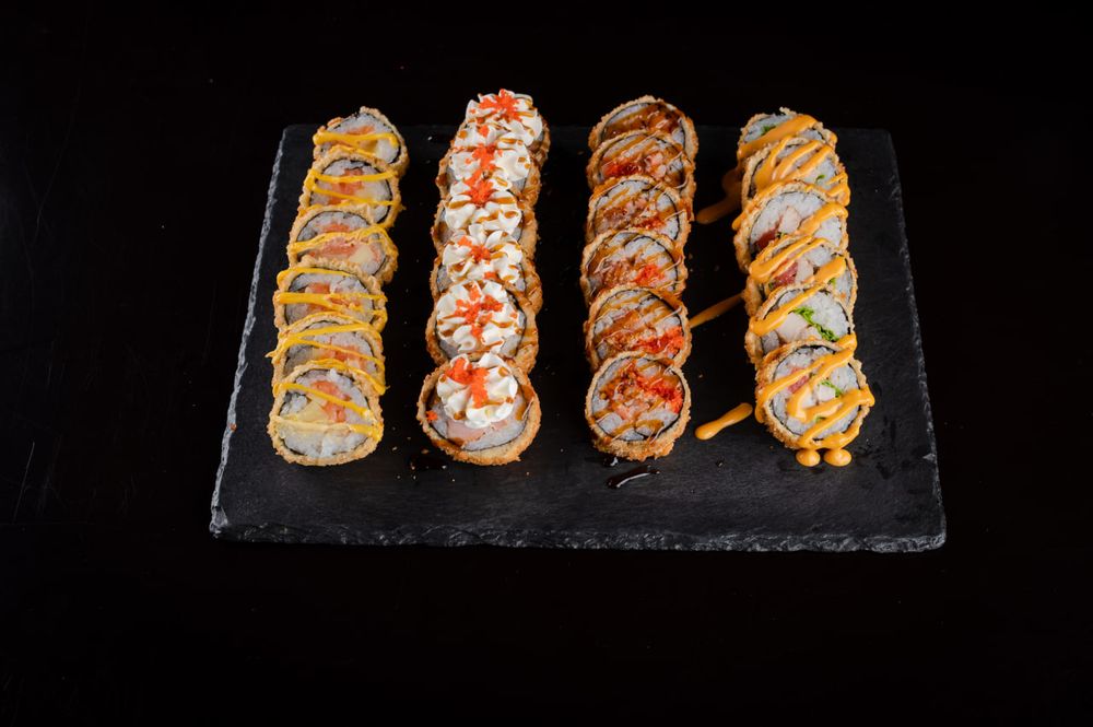 Ролл «Сырный лосось», ролл «Форида», ролл «Американский», ролл «Темпурный цезарь»