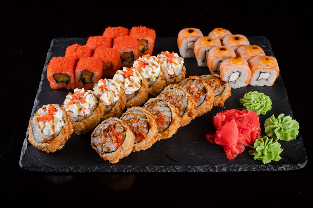 Ролл «Филадельфия гриль», ролл «Калифорния» с лососем, ролл «Флорида», ролл «Американский»