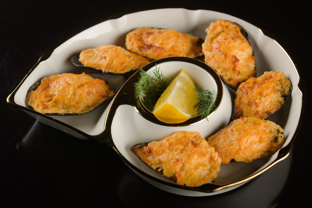 Мидии запеченные с сыром пармезан