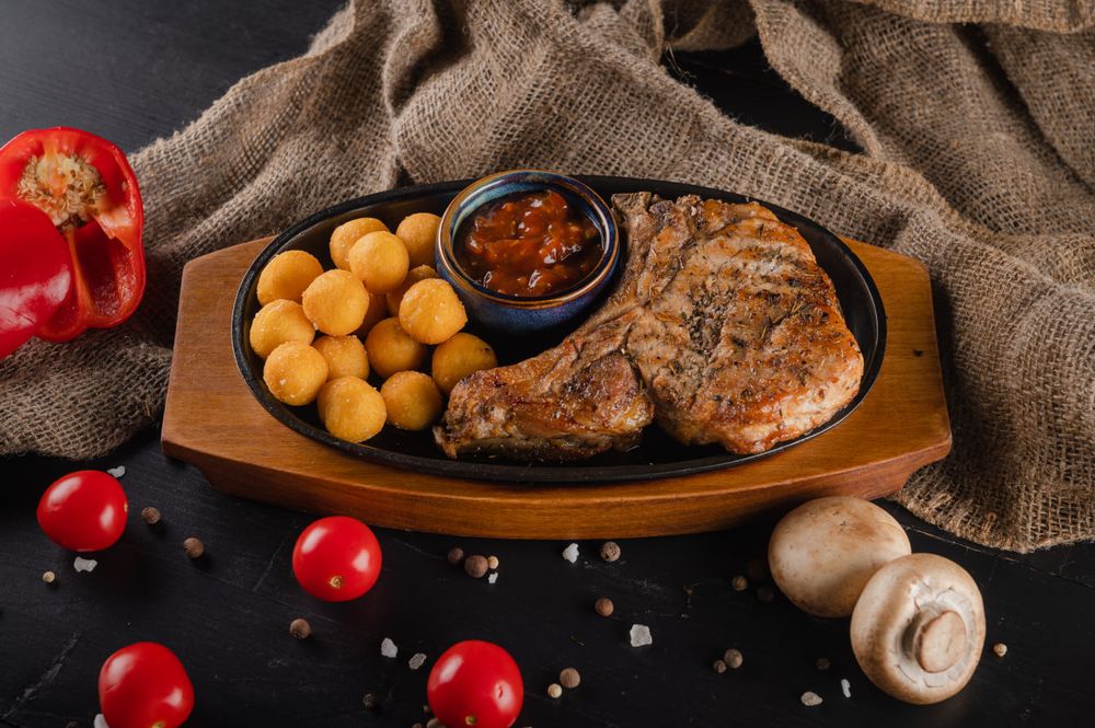 Котлетки из индейки с ореховым соусом и овощами на гриле