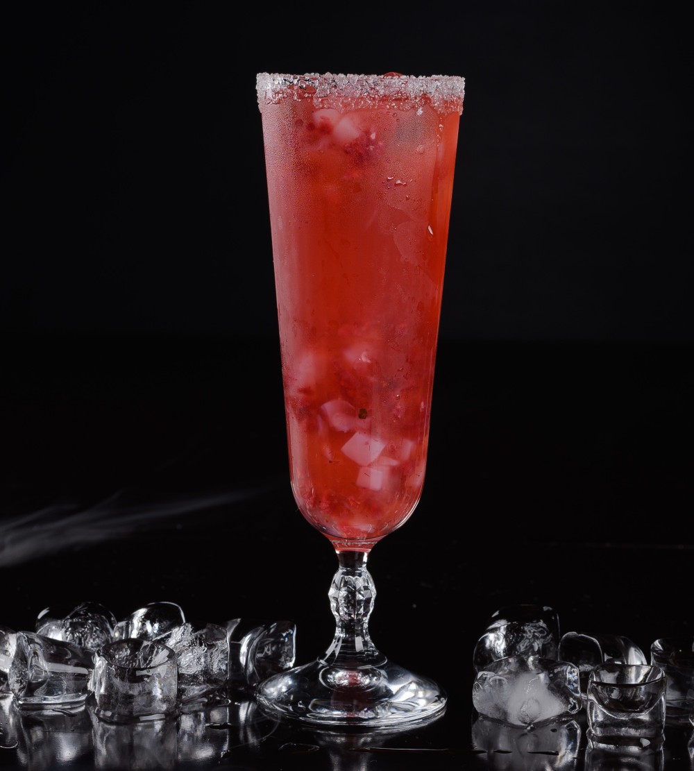 Кокосовое желе, сиропы малина,Ю сок яблоко, лёд