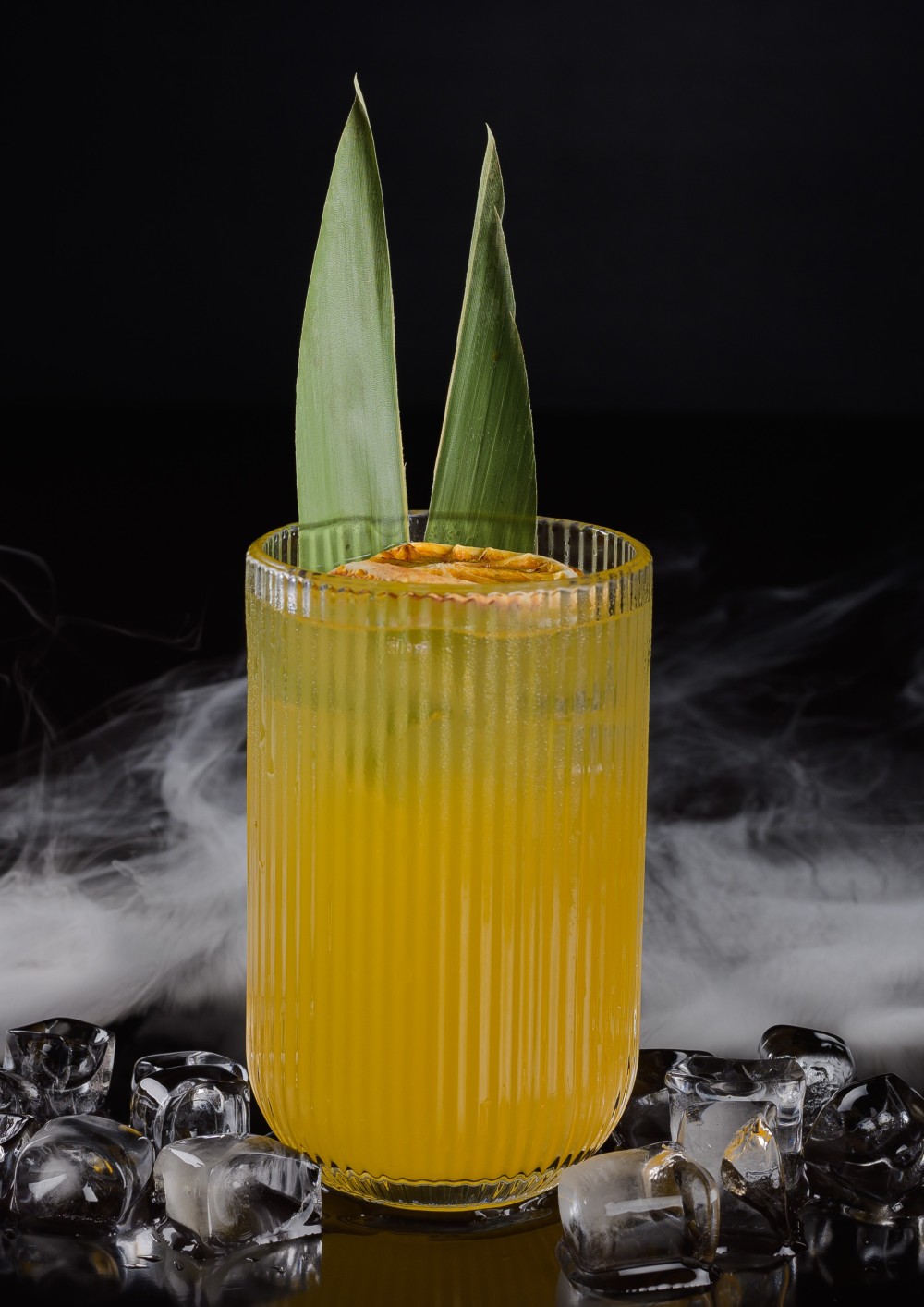 Сок ананас, сиропы, лимонный сок, лёд