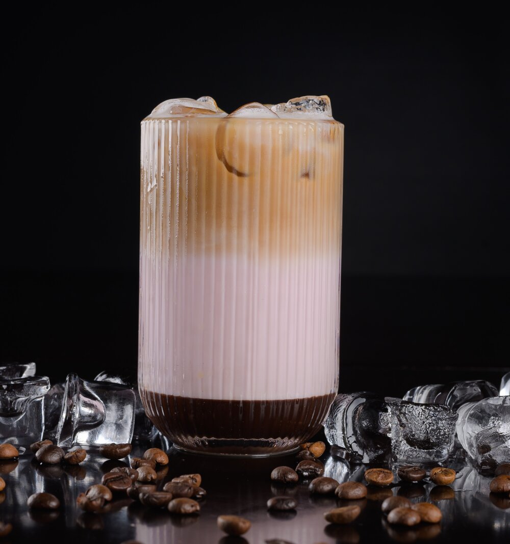 Холодный кофе: Эспрессо, молоко, сироп малина, топинг
